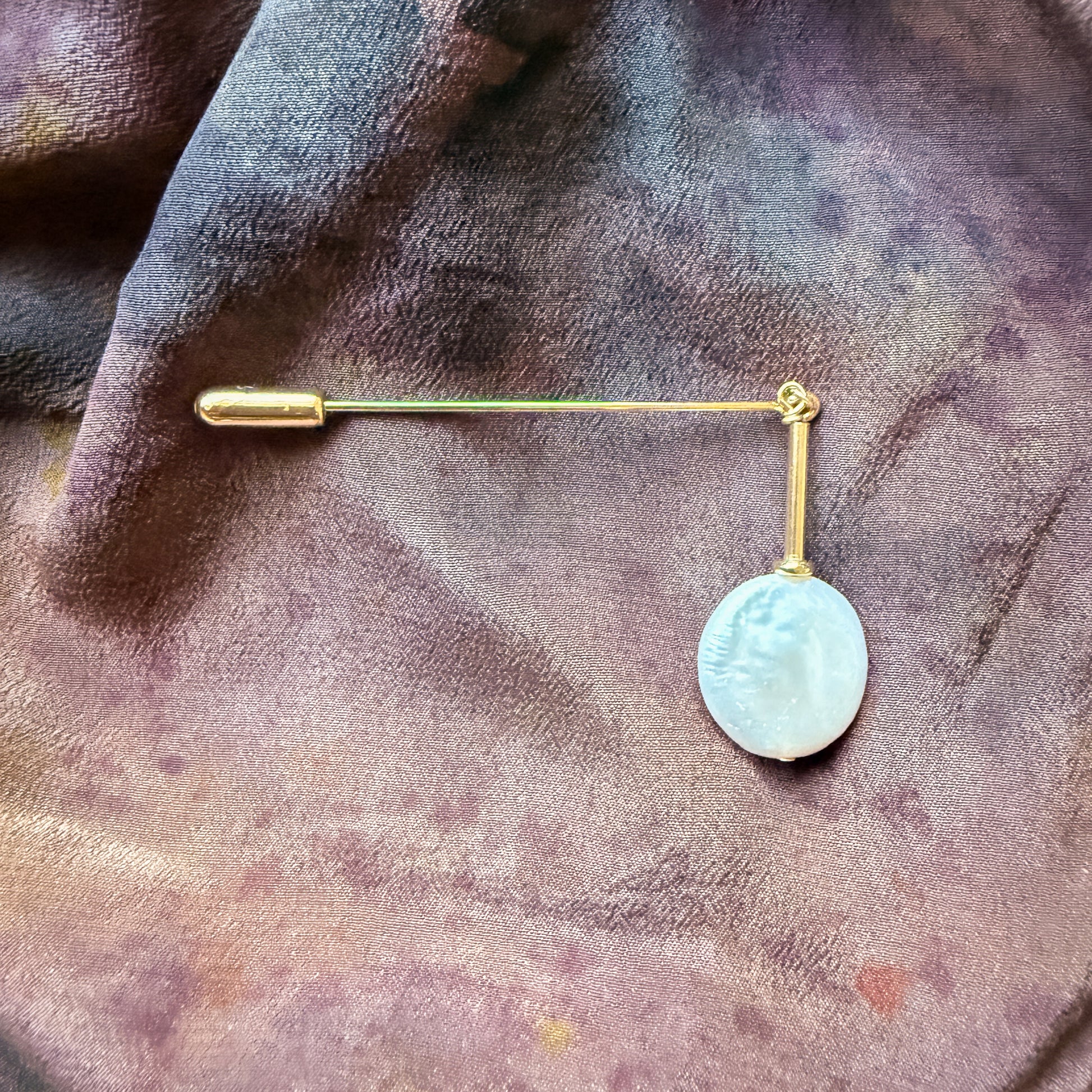 Celebrate cherished moments with this elegant Fond Scarf Pin, a versatile accessory that doubles as a lapel pin or brooch. Each piece honors the memories and nostalgic experiences we hold dear, featuring a luminous keshi pearl suspended like a gentle pendulum between past and present. The pearl is gracefully mounted on an 18k gold-plated pin with a protective tip cover, creating a timeless piece that captures the beauty of reflection and remembrance.