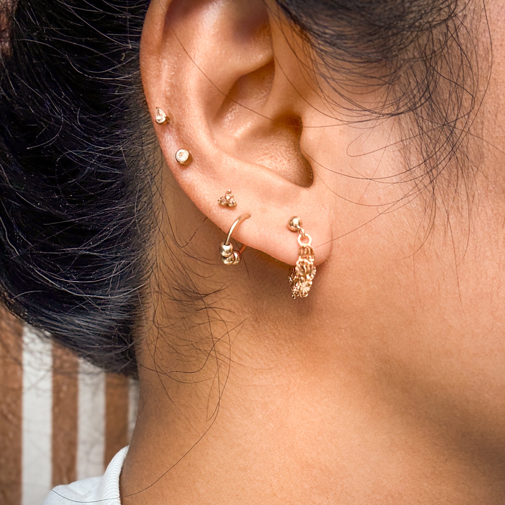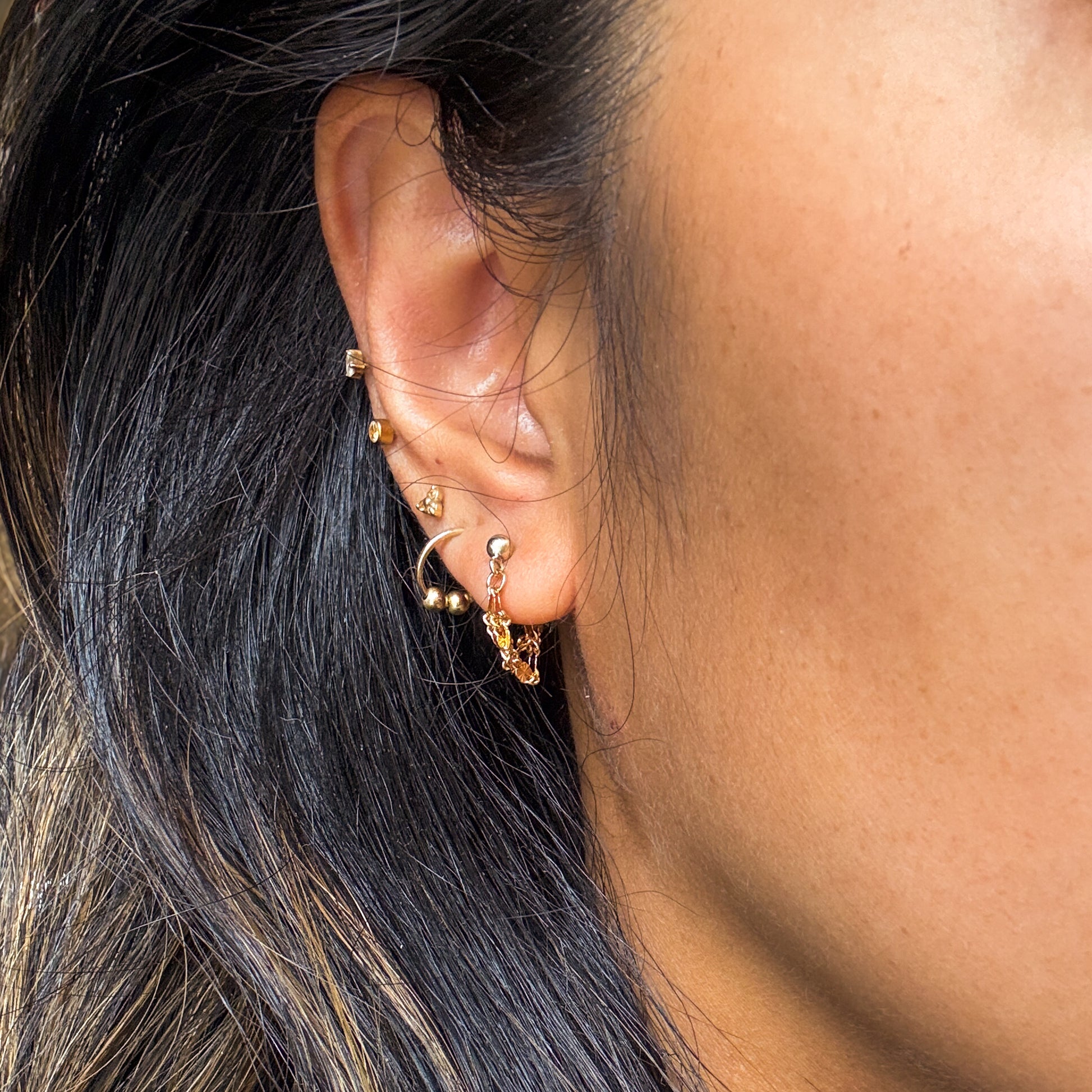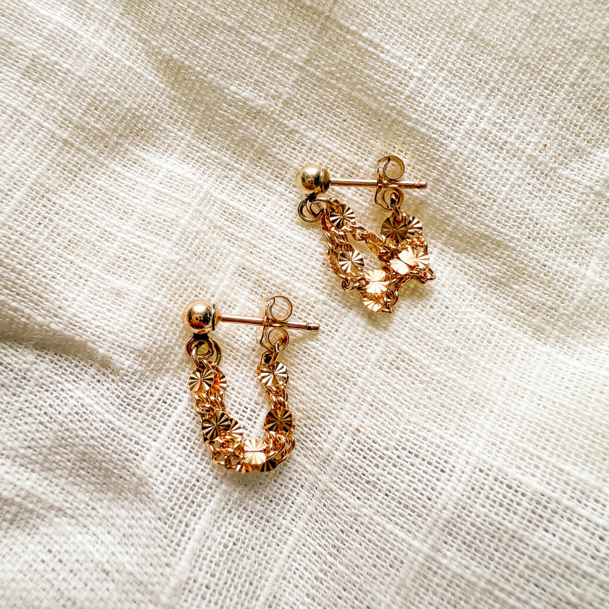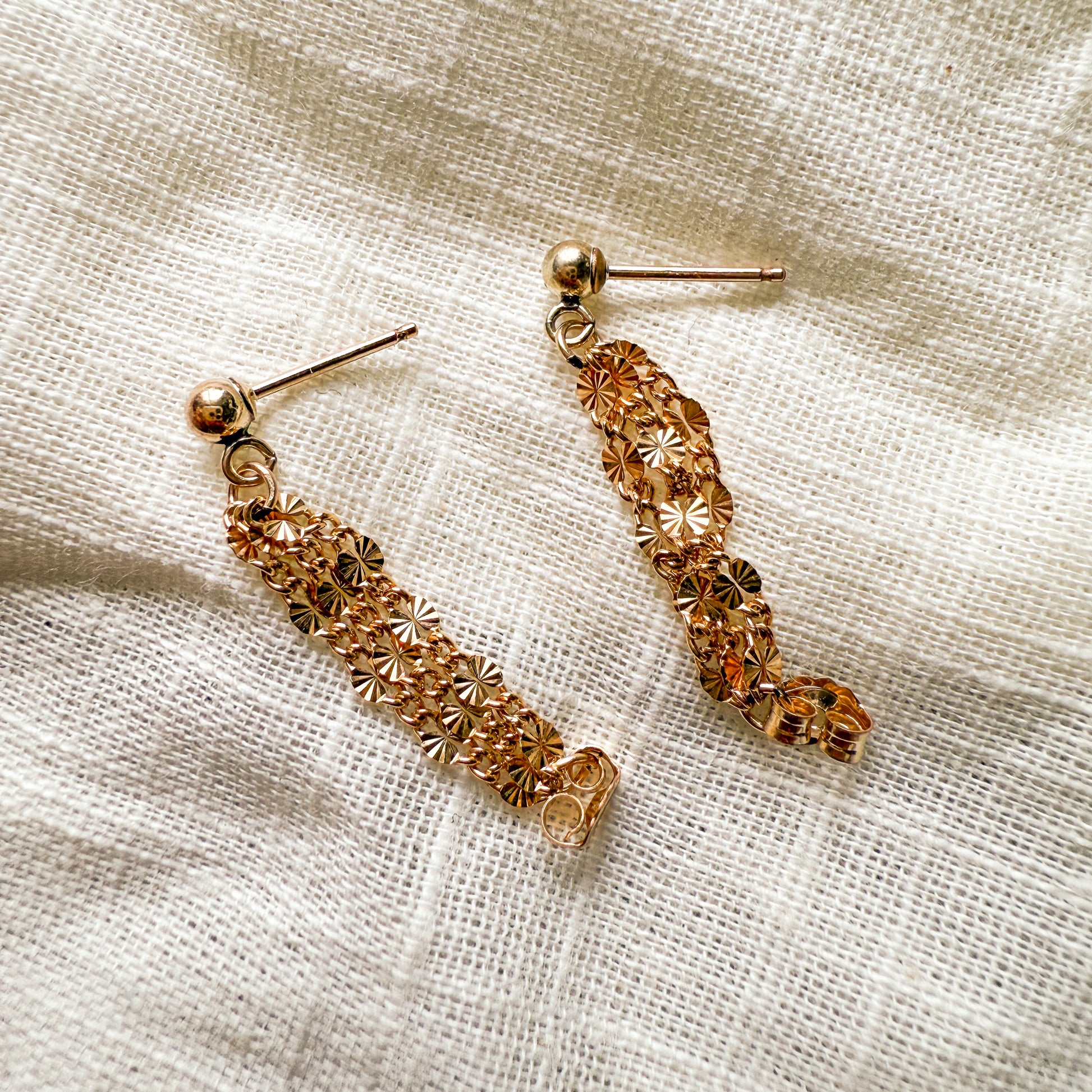 The Glint Earrings are an easy way to add an unexpected sparkle to your everyday look with their wrap-around feature (never worry about losing the earring backs!). They were designed with manifestation in mind as they include three strands of starburst chains that catch the natural light sparkles and symbolically the numbers 3, 6, and 9 are tied to the manifestation method which represent creative expression, inner strength, and rebirth.