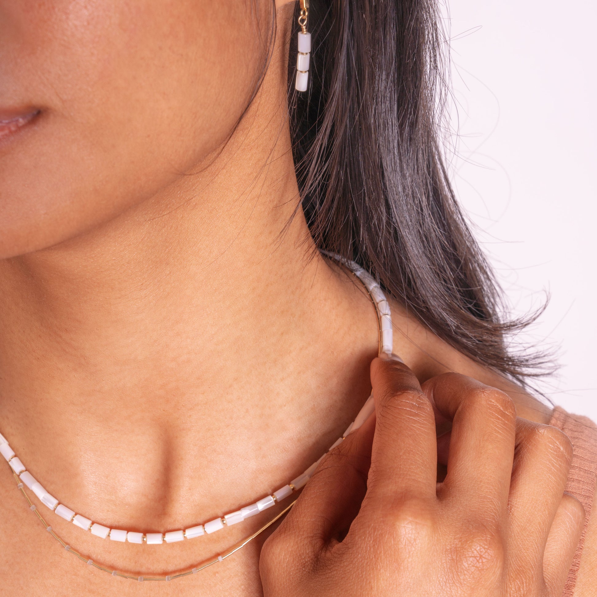 - Mother of pearl tube beads