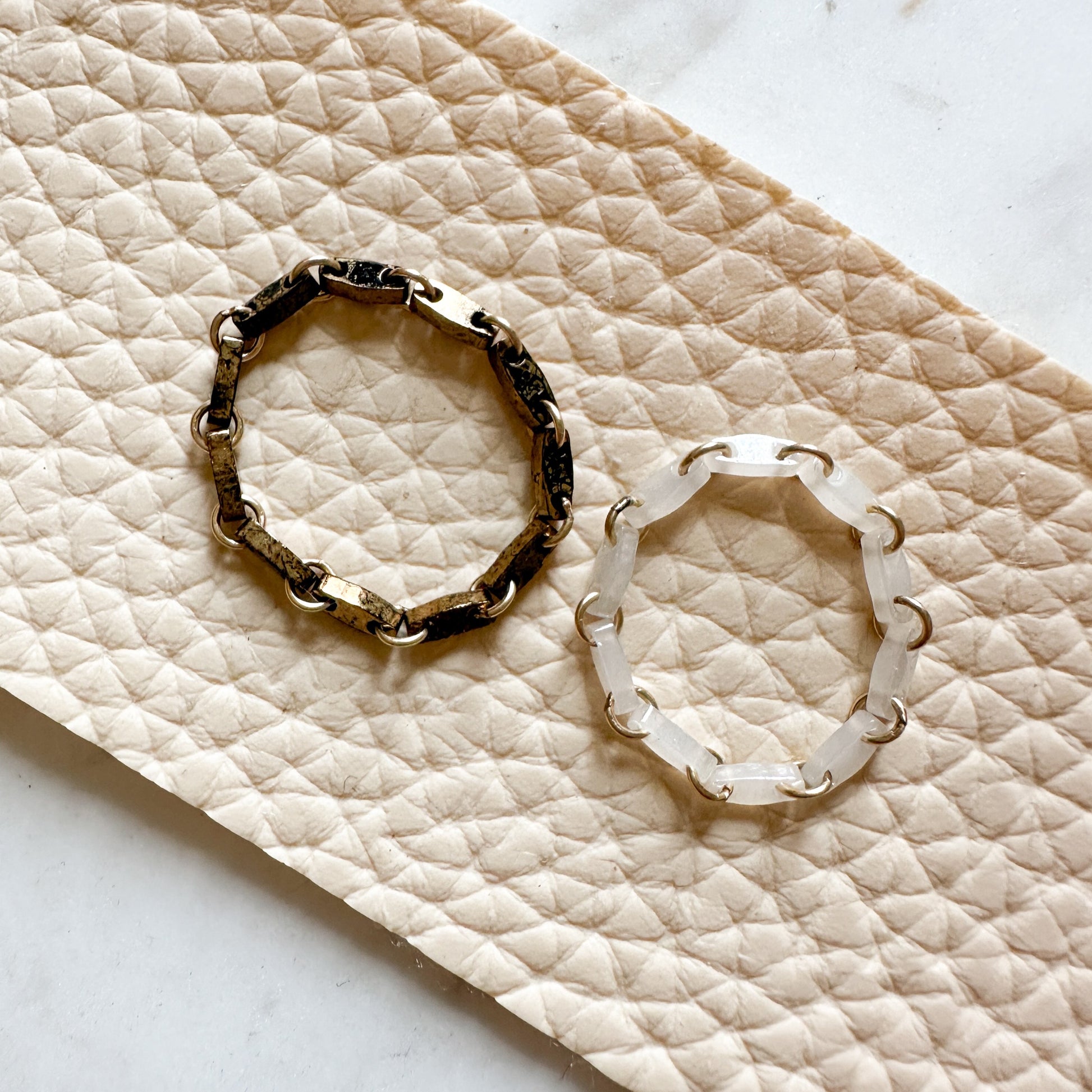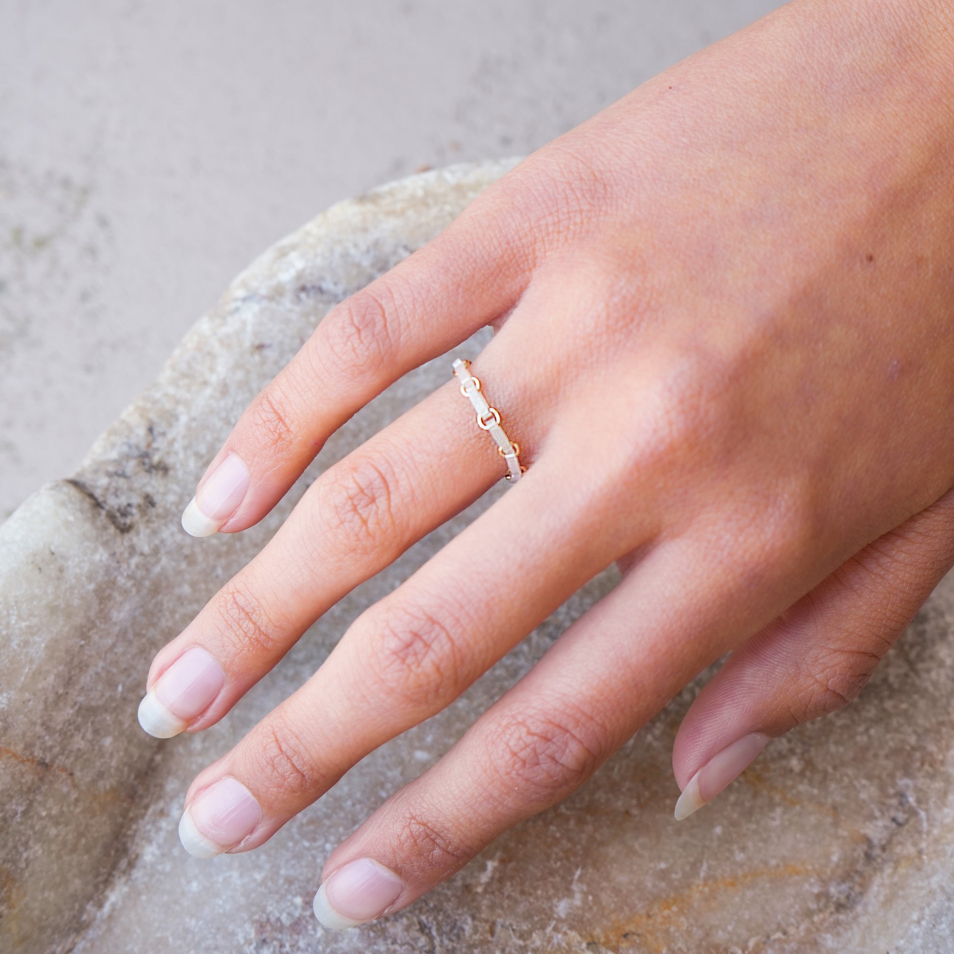 Extend kindness to yourself with the Little Grace Ring. Available in your choice of metallic bronze or milky off-white tila beads, this ring serves as a gentle reminder to grant yourself grace in challenging moments. Its smooth texture and flexible design also make it a soothing fidget ring, perfect for easing anxiety and offering comfort.