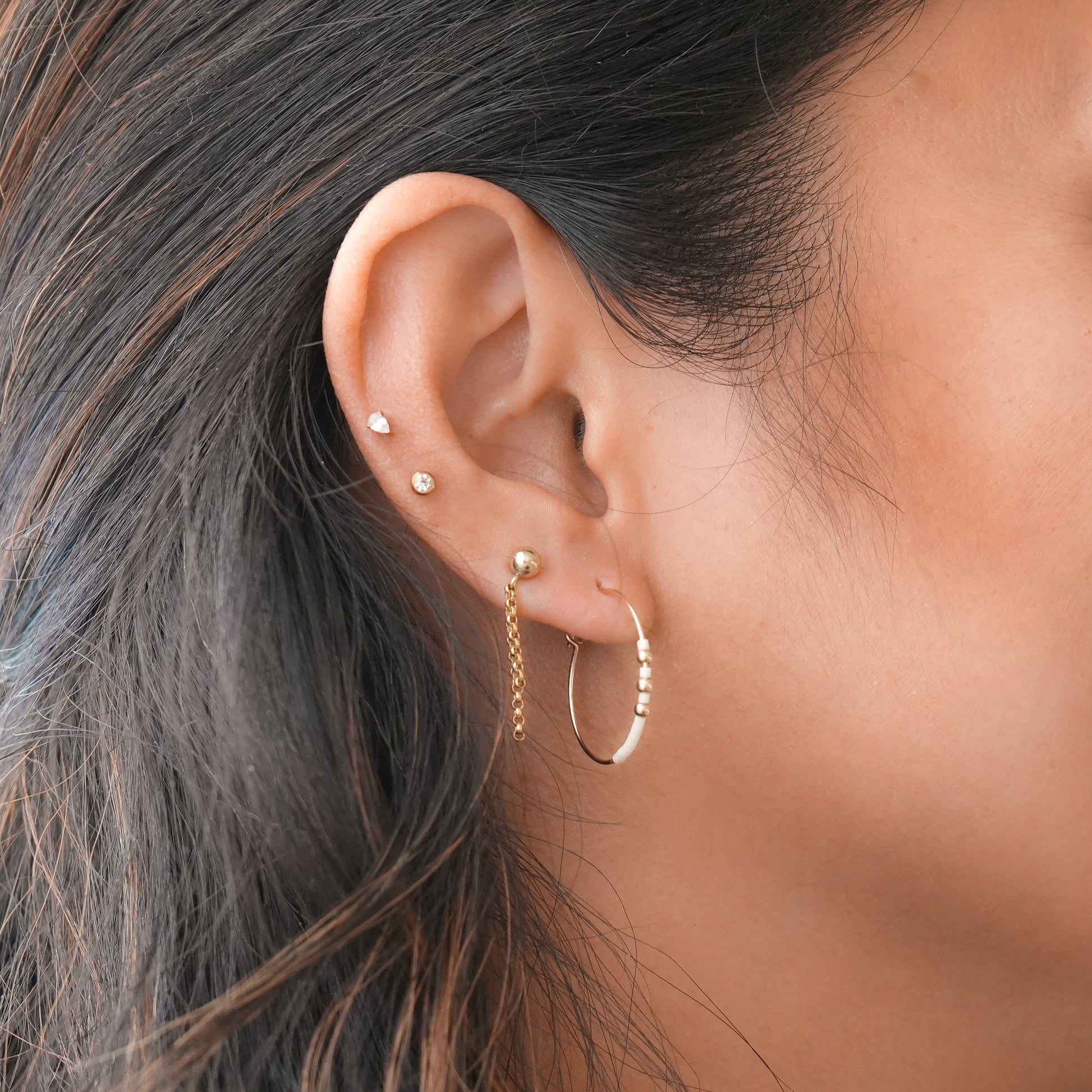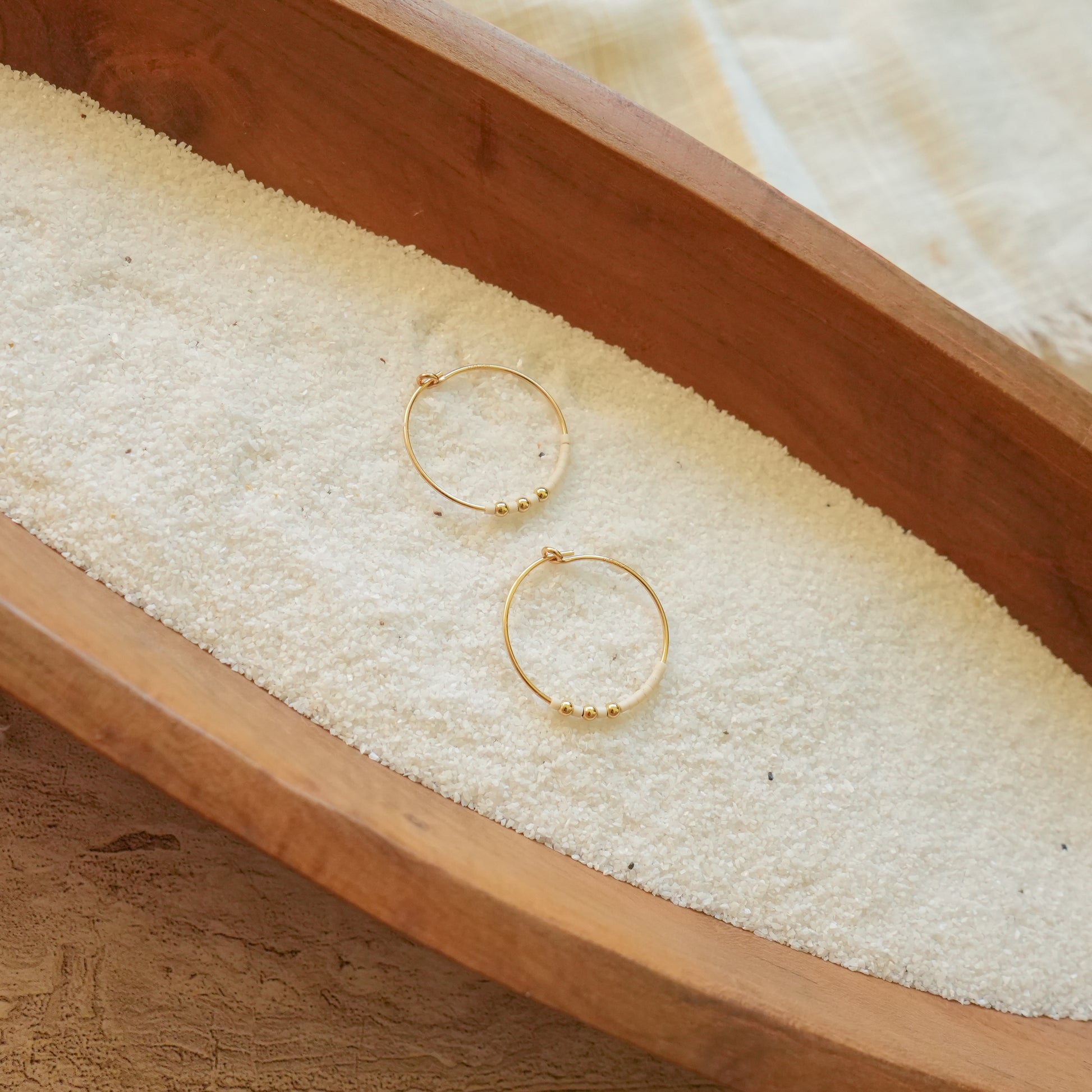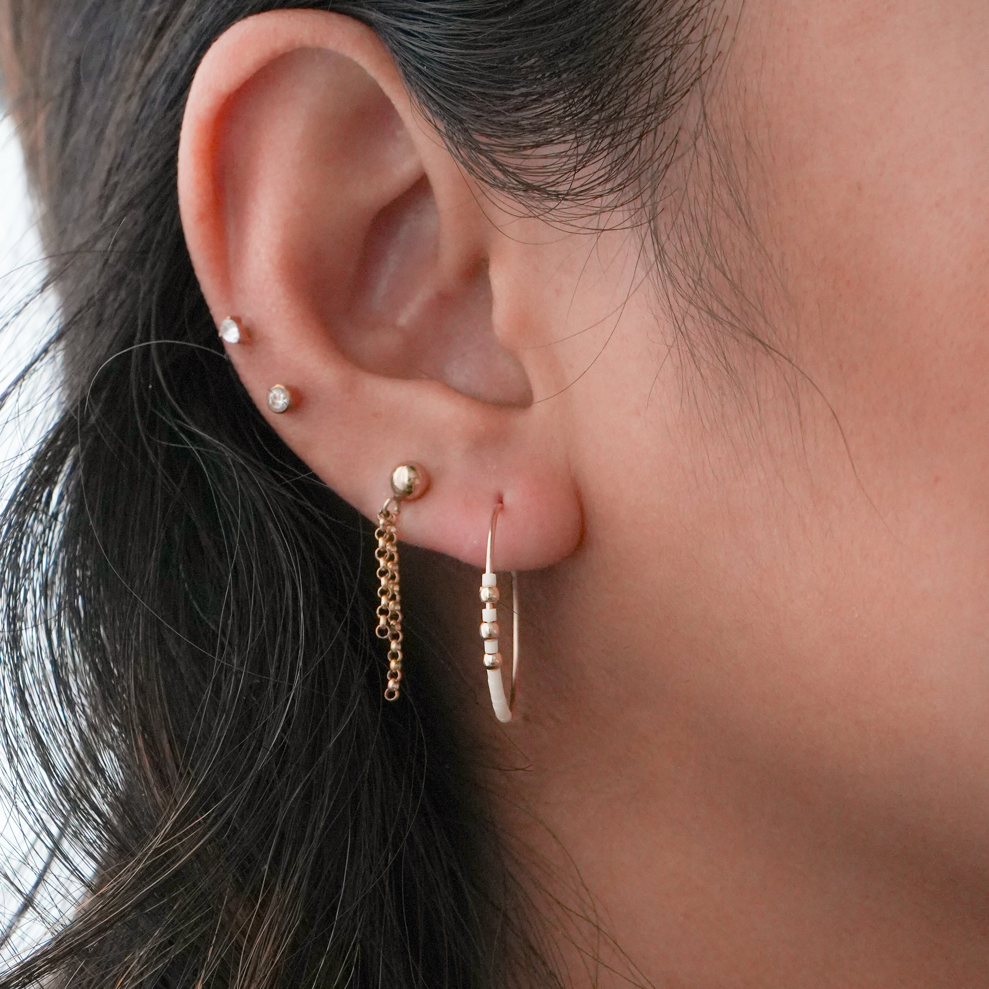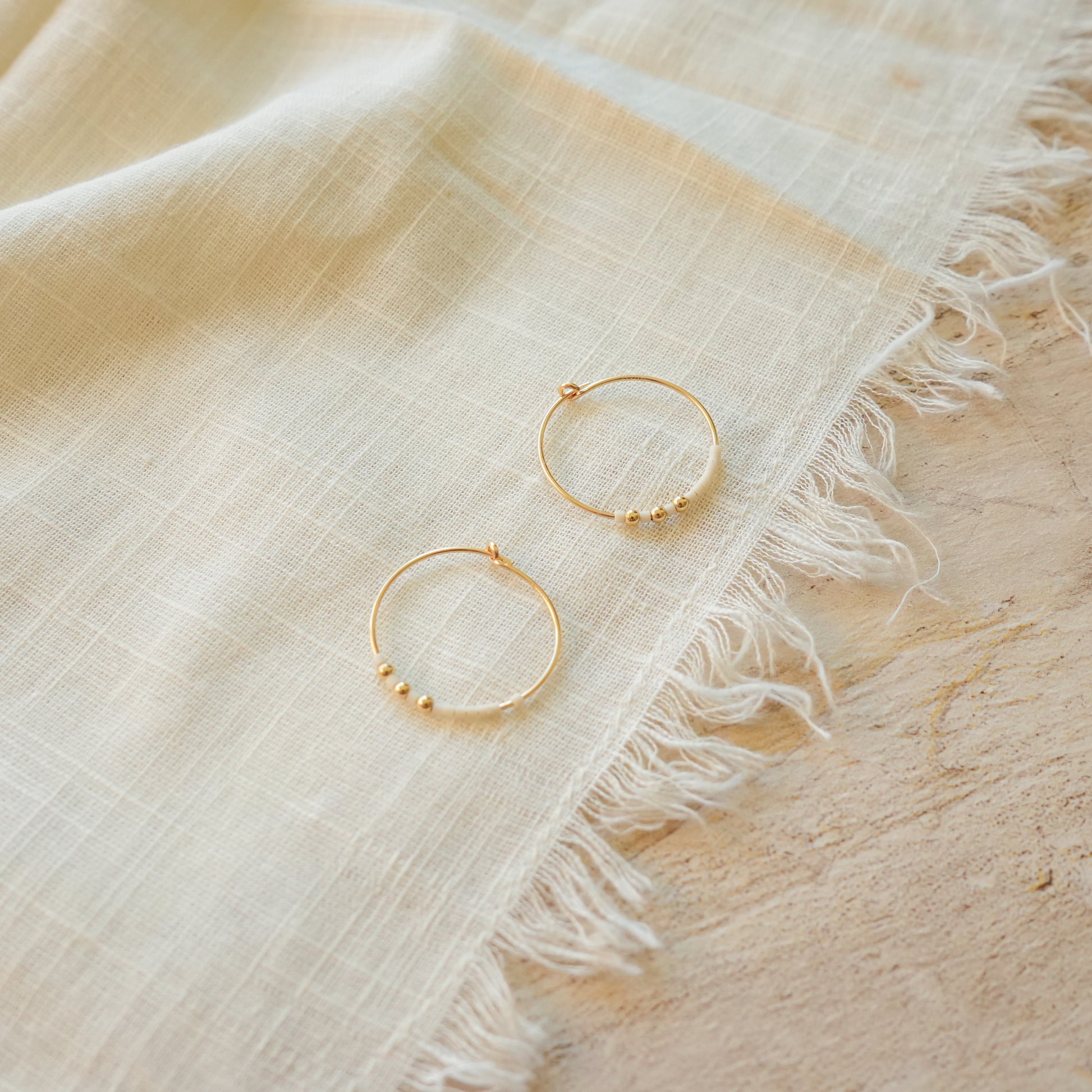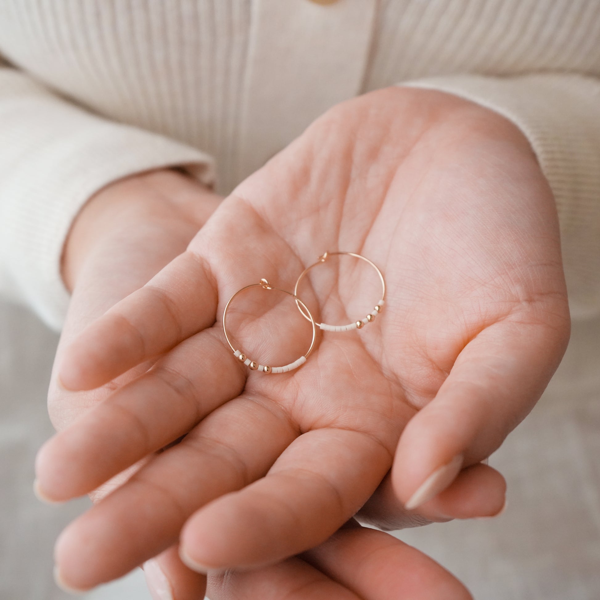 Is the glass half empty or half full? It's all about perspective and you should always try to see the positive side of things. These simple hoop earrings with an asymmetric arrangement of matte glass bead detailing and 14k gold-filled beads remind you that things may not always appear as they seem upon first look, but from a different vantage point, you can always appreciate the beauty of the situation.