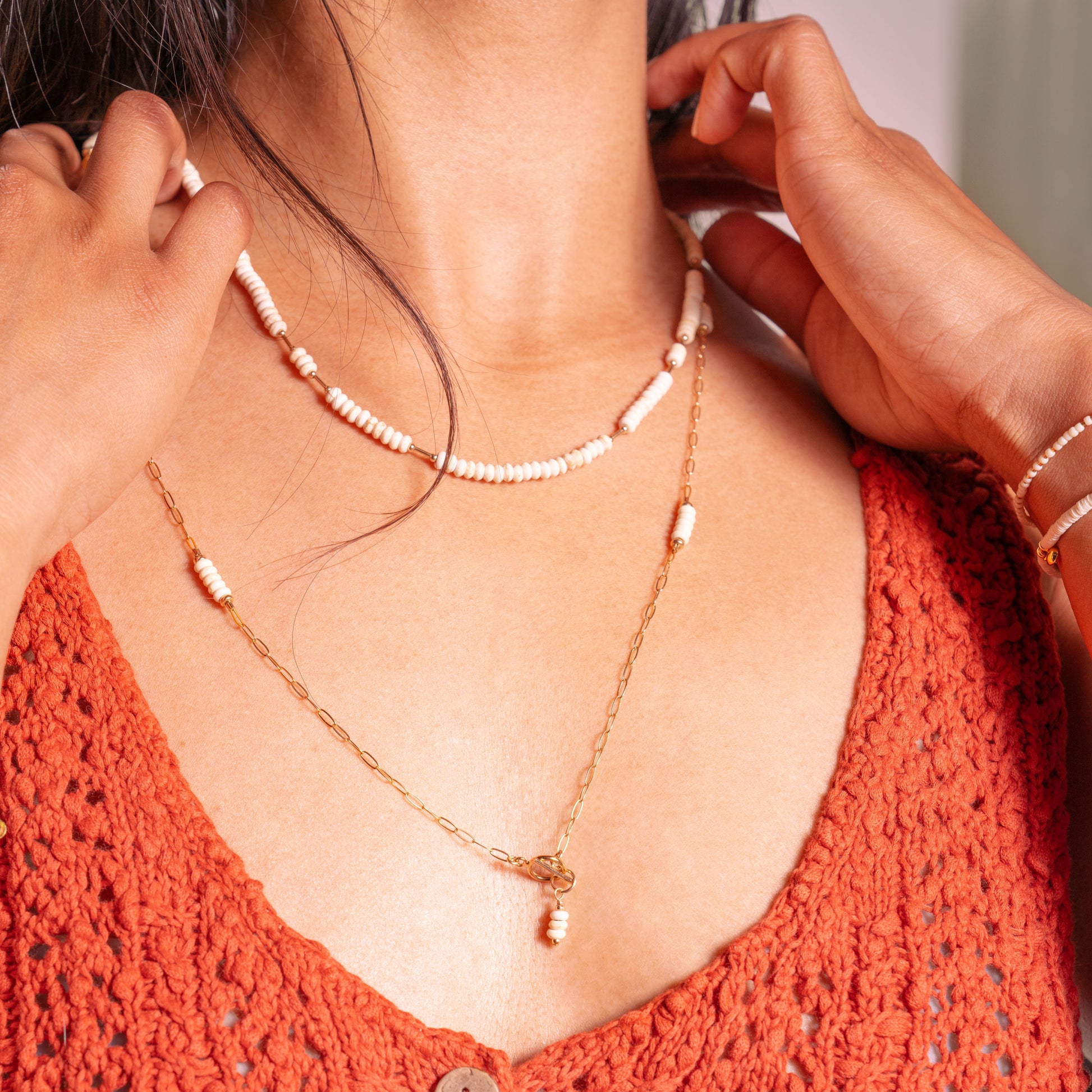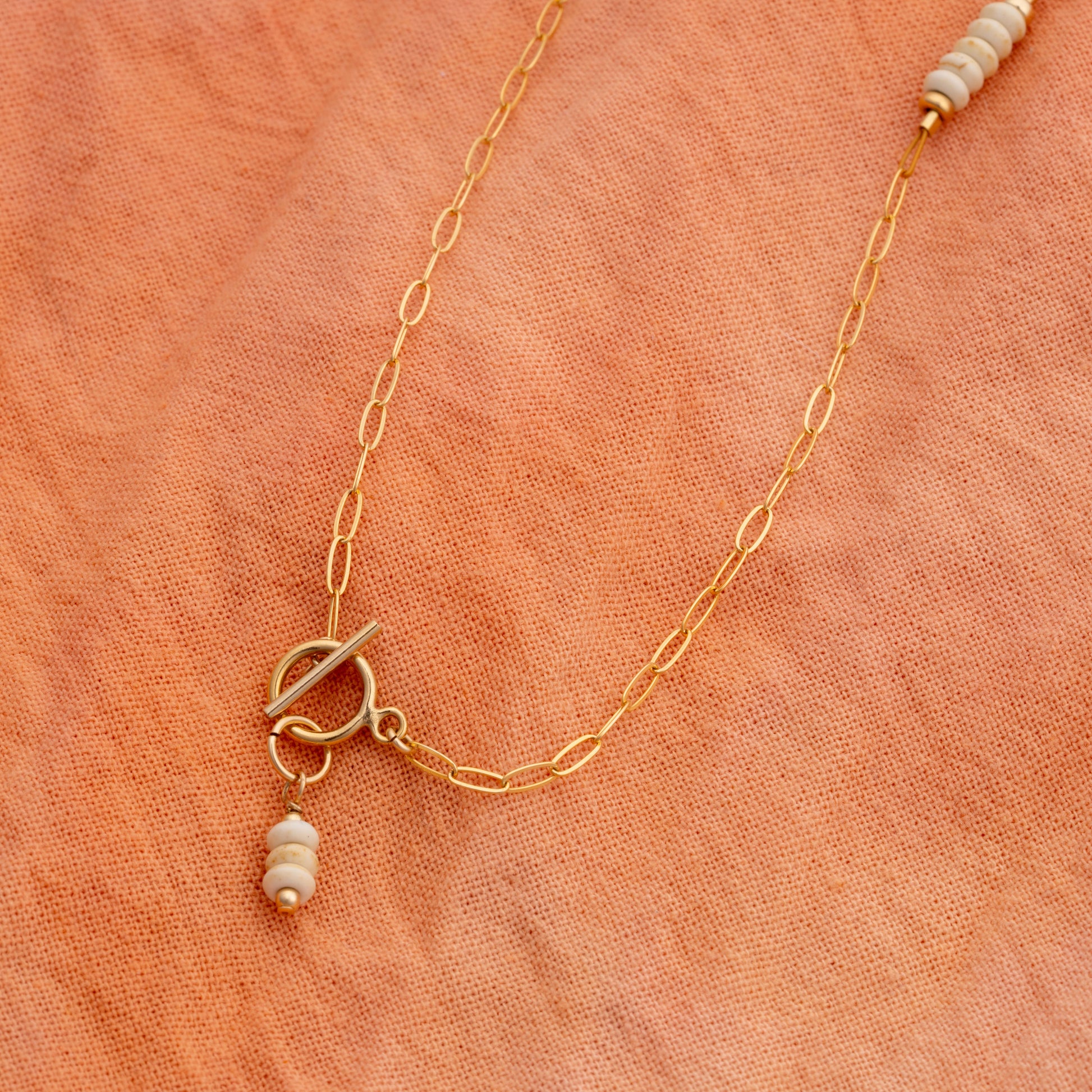 As light as a breeze, this 27" necklace of 14k gold-filled chain is punctuated with stone beads and gold-filled findings. Sport in two ways as a toggle style or lariat. Make it a set with the matching Refresh Charm Bracelet.