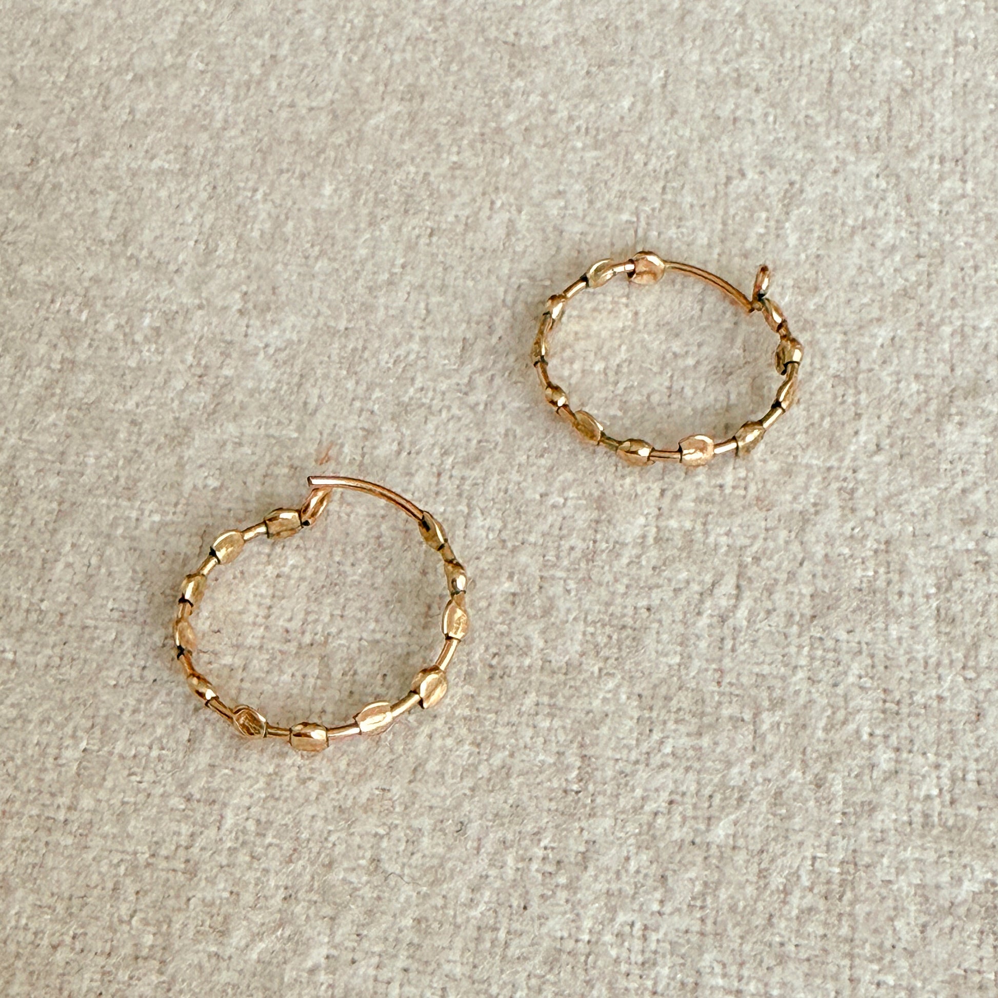 These hoop earrings with an alternating pattern of flattened beads are a simple, understated addition to the earring-lover's collection introducing an unexpected dose of texture to one's lobes.