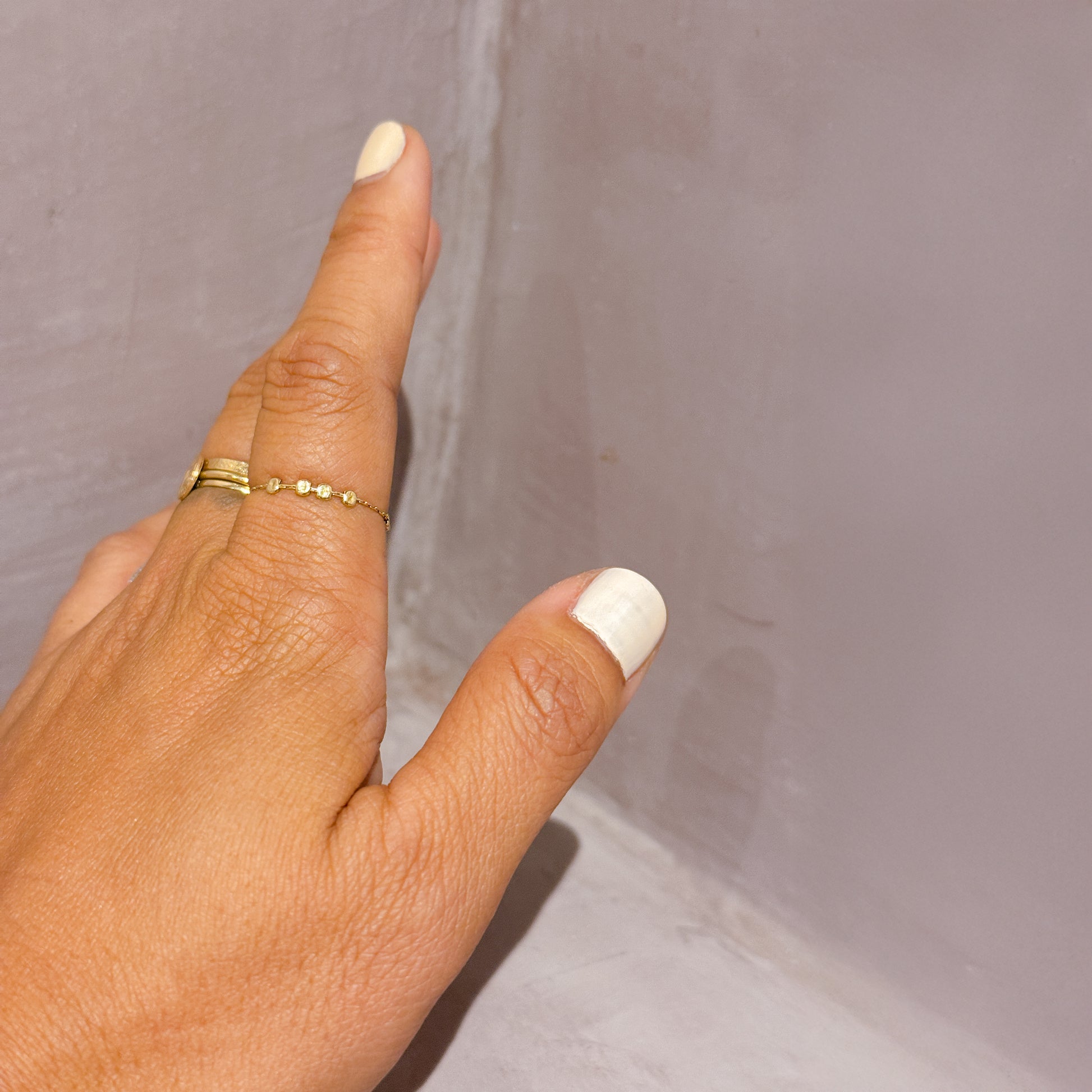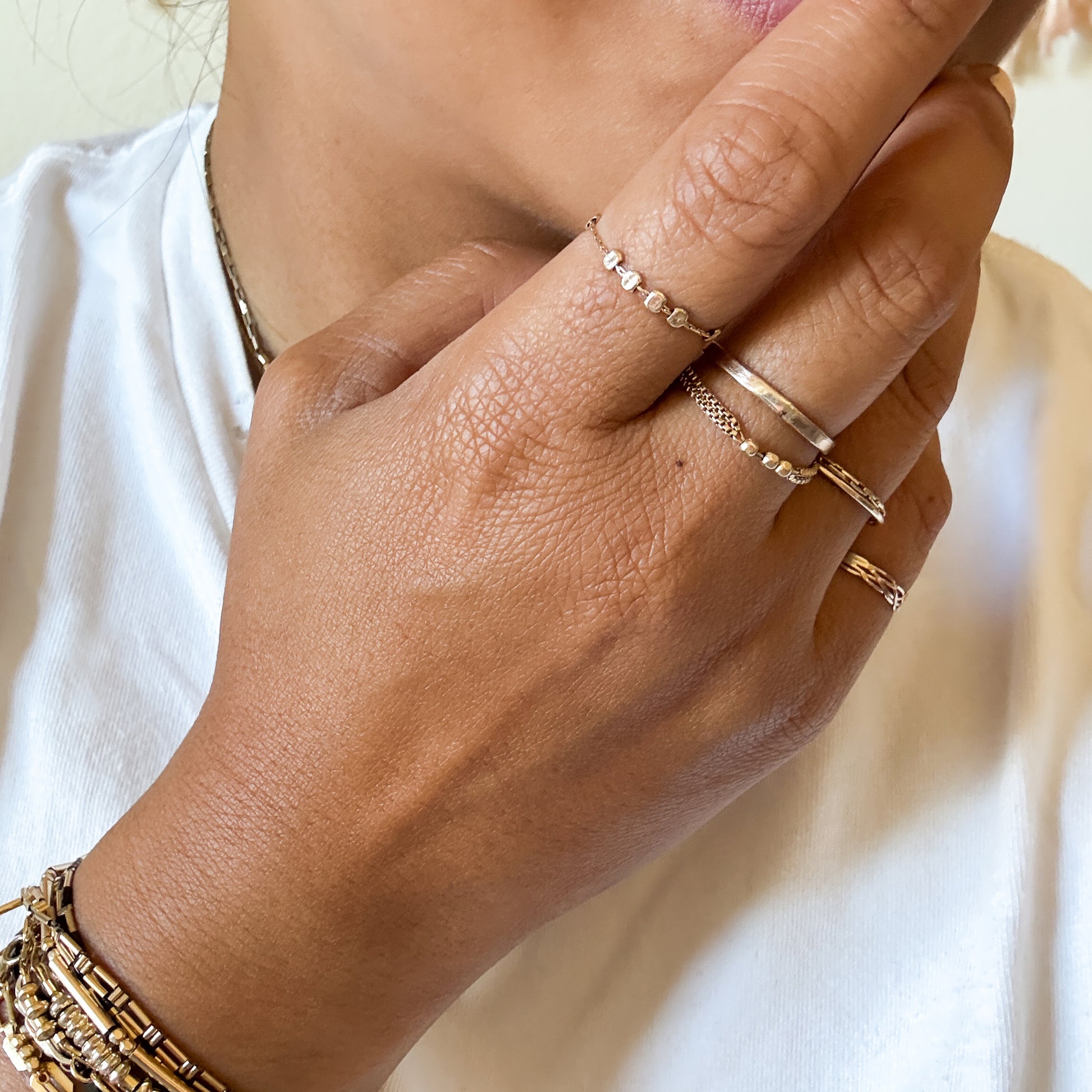 3 sets of flattened beads go along the circumference of this ring that sits so lightly and comfortably on your finger to serve as your reminder to consciously breathe from time to time.