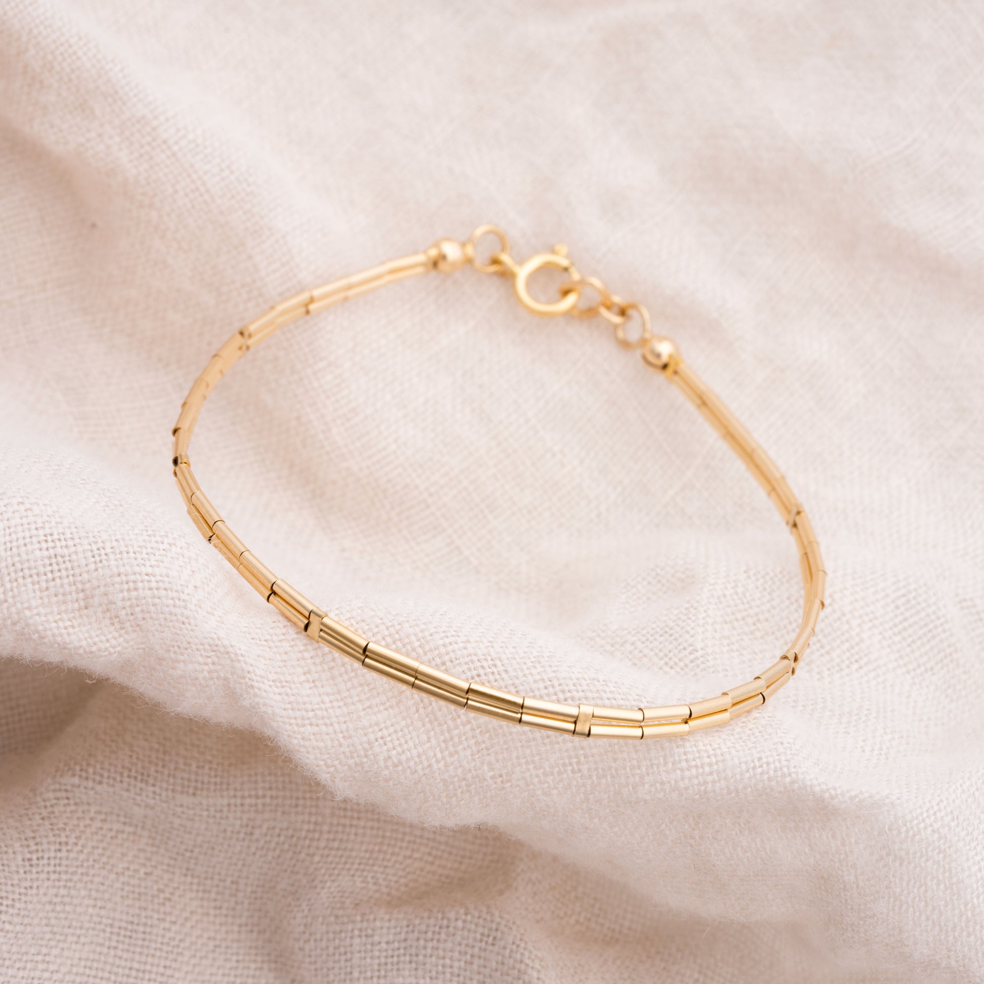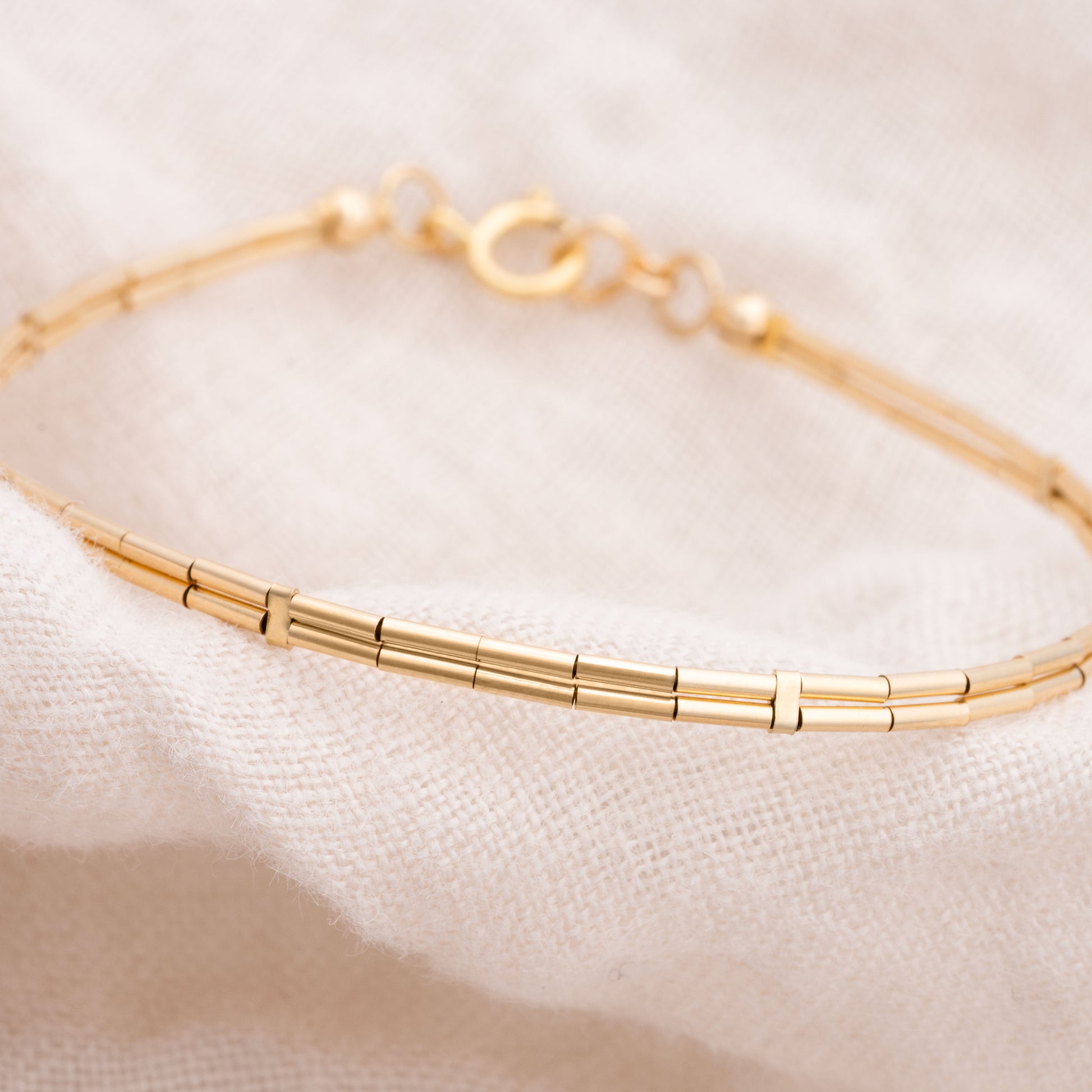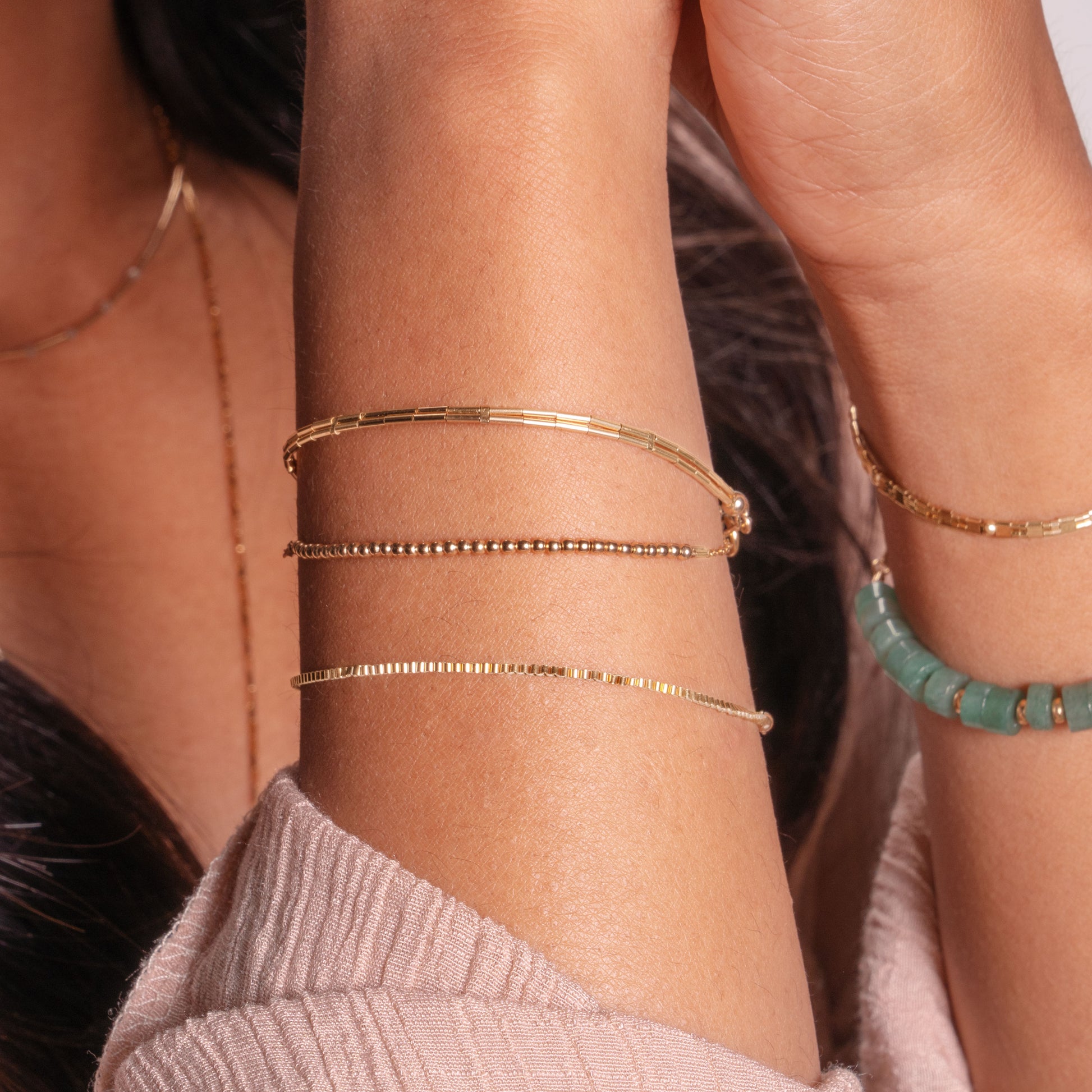 Most adventures in life are more sweet when we're side by side with those who support us most. This sleek, bangle style was created with 14k gold-filled beads and findings.