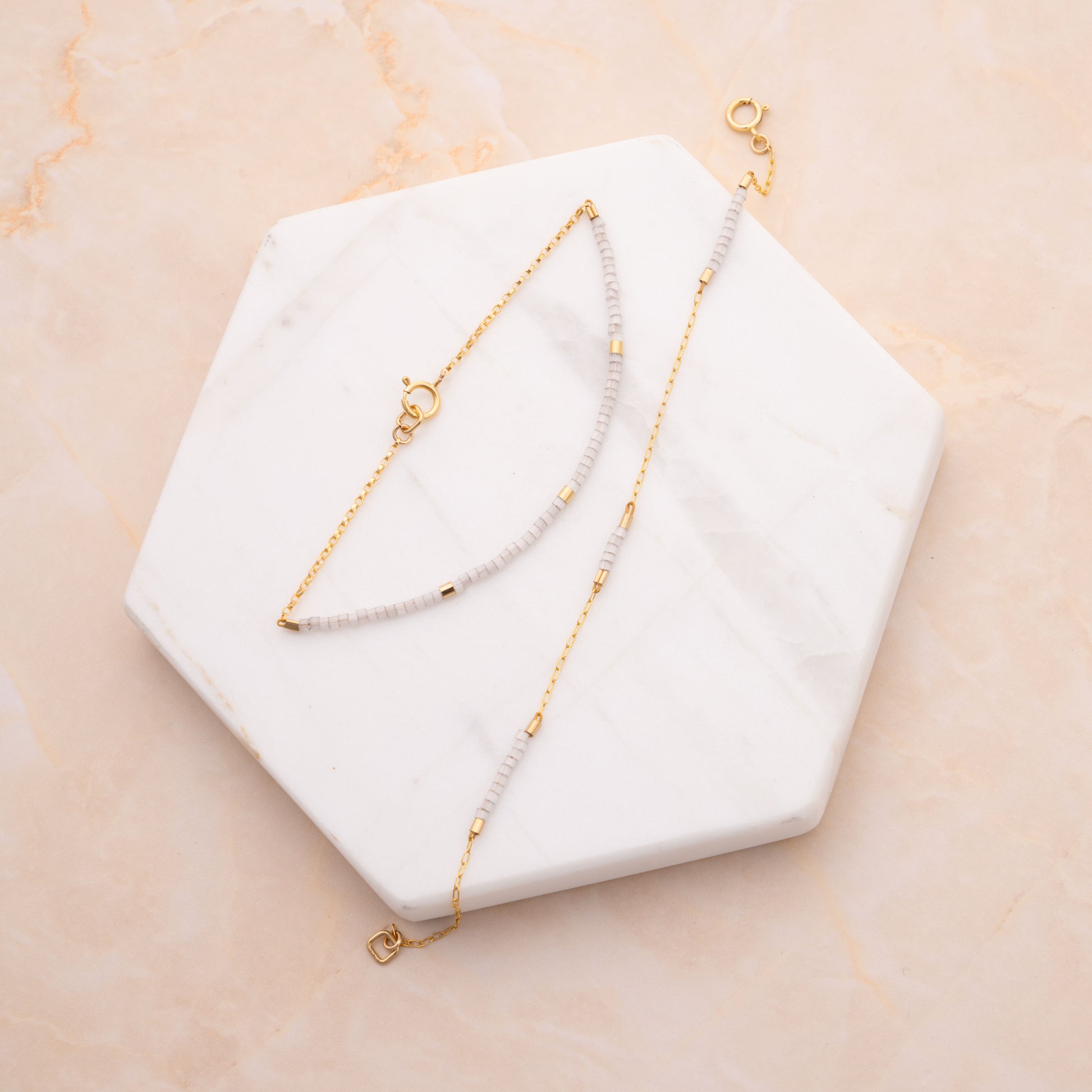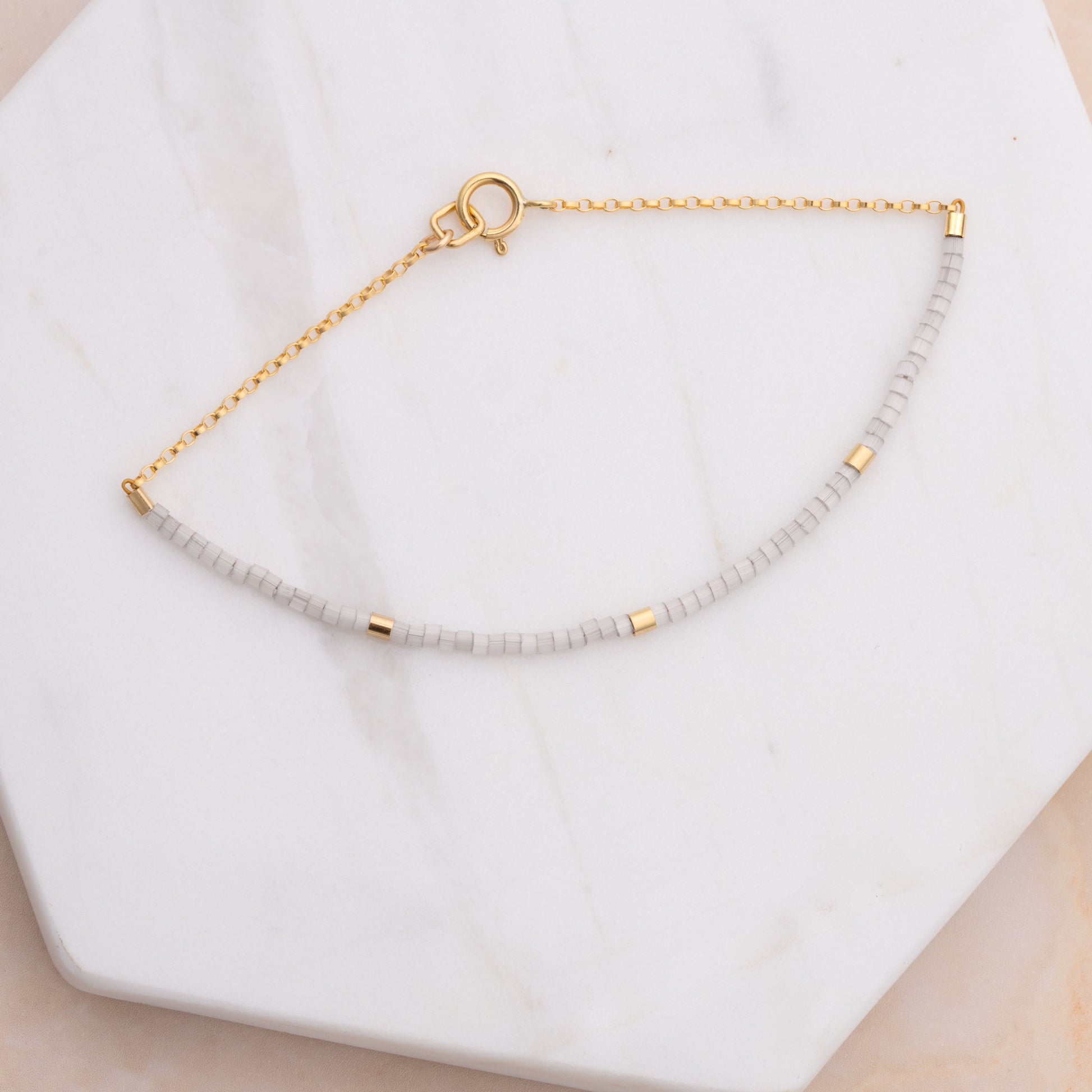 The Day bracelet is a medley of Miyuki glass beads, 14k gold filled findings and delicate chain.
