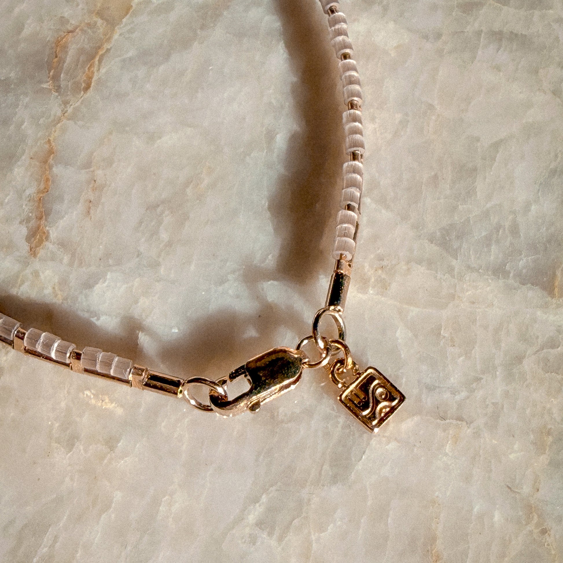 The Other Side Bracelet is your daily reminder that understanding comes from seeing all angles. This elegant cuff-style piece, born from our beloved Side by Side design, features luminous transparent beige glass seed beads set in warm gold-filled metal. It's crafted for those who believe that opposing perspectives can coexist beautifully and that true wisdom lies in bridging divides. Wear it as a gentle nudge to approach life with curiosity and compassion, knowing that when both sides are honored, harmony naturally follows. A sophisticated accessory that speaks to your commitment to balance and open-mindedness.