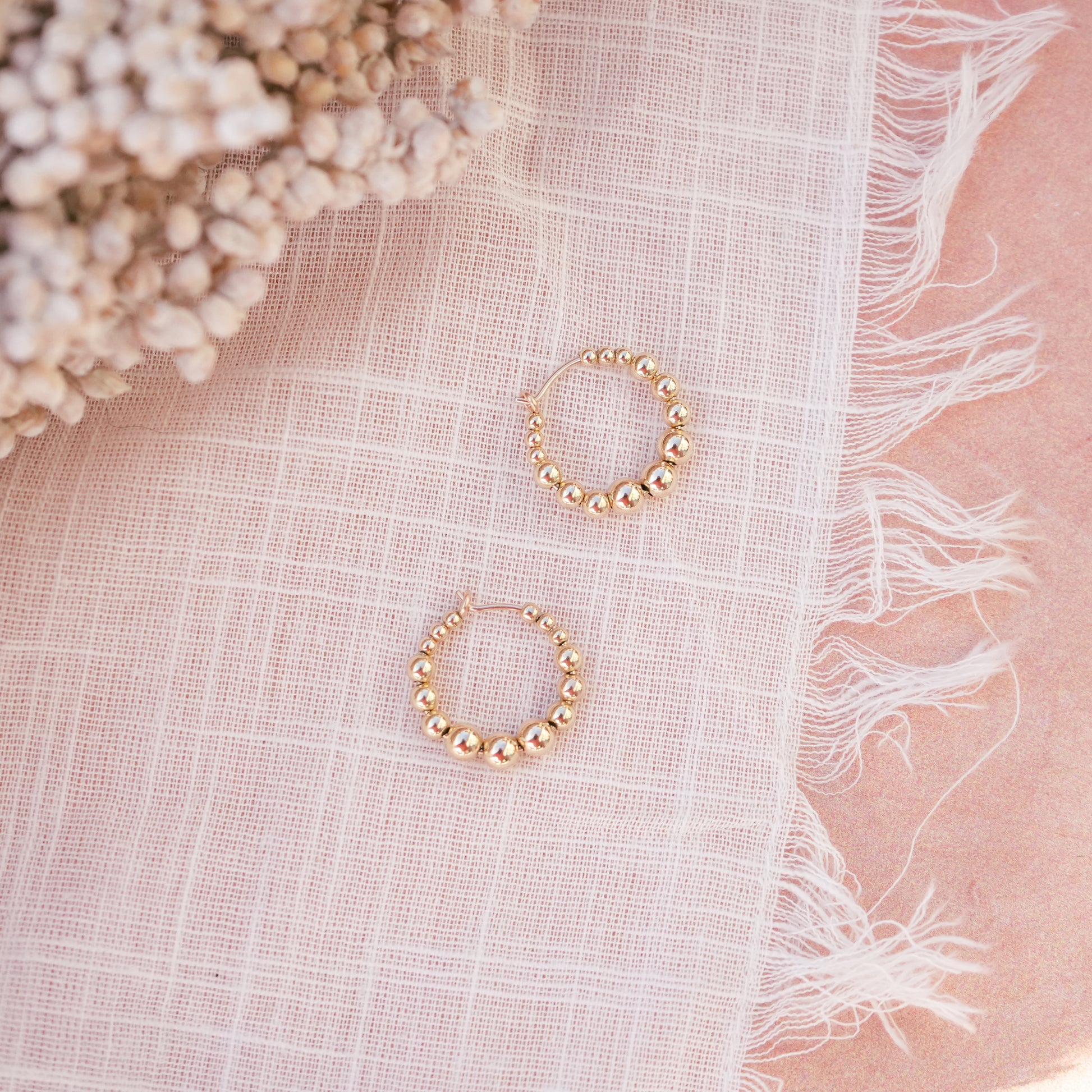 These gold-fill hoops are laden with graduated circle beads symbolic of the eternal loop of love.