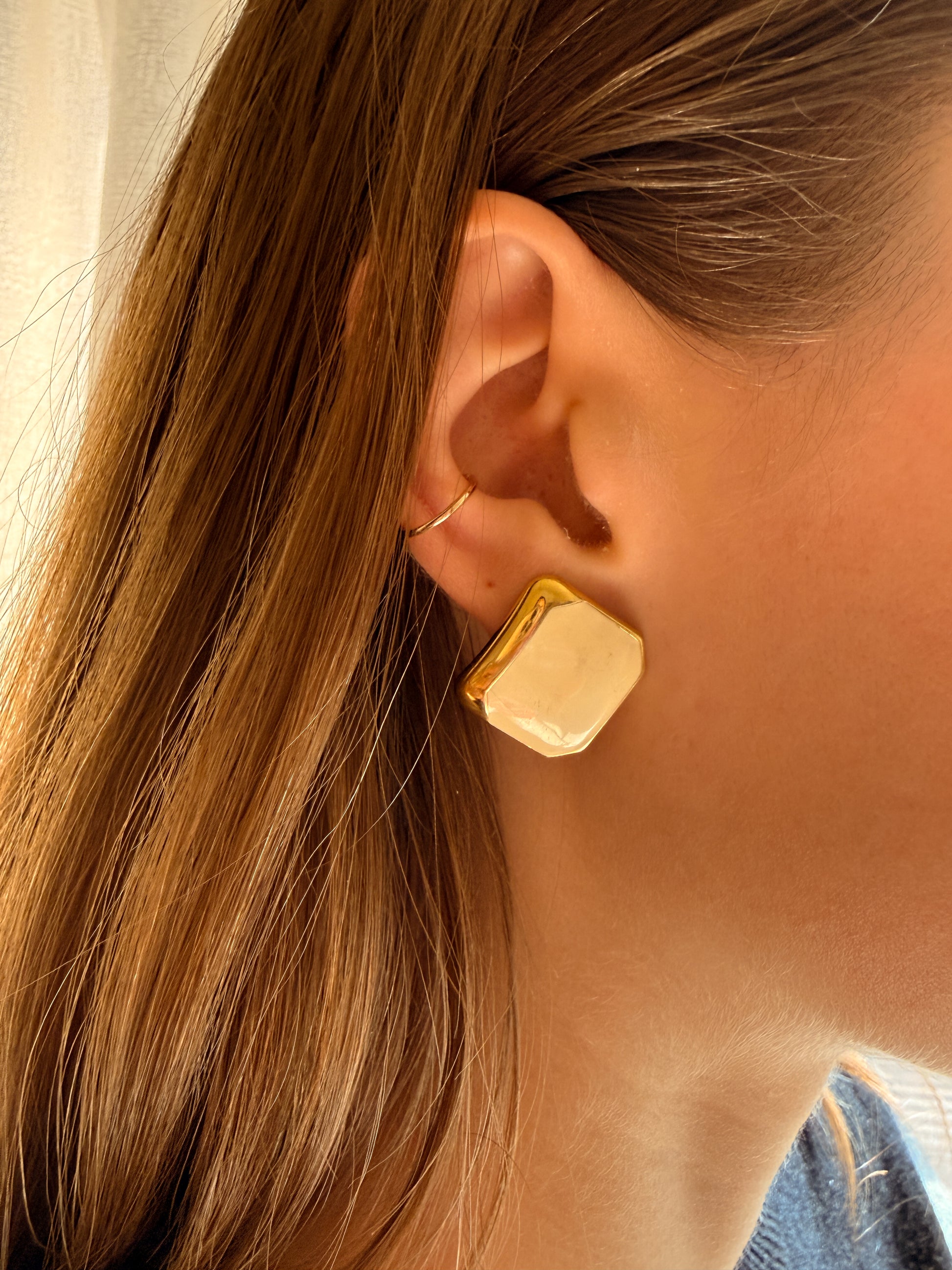 Vintage cream-colored enamel earrings. Original brand: Monet. Estimated circa 1970s - 1980s.