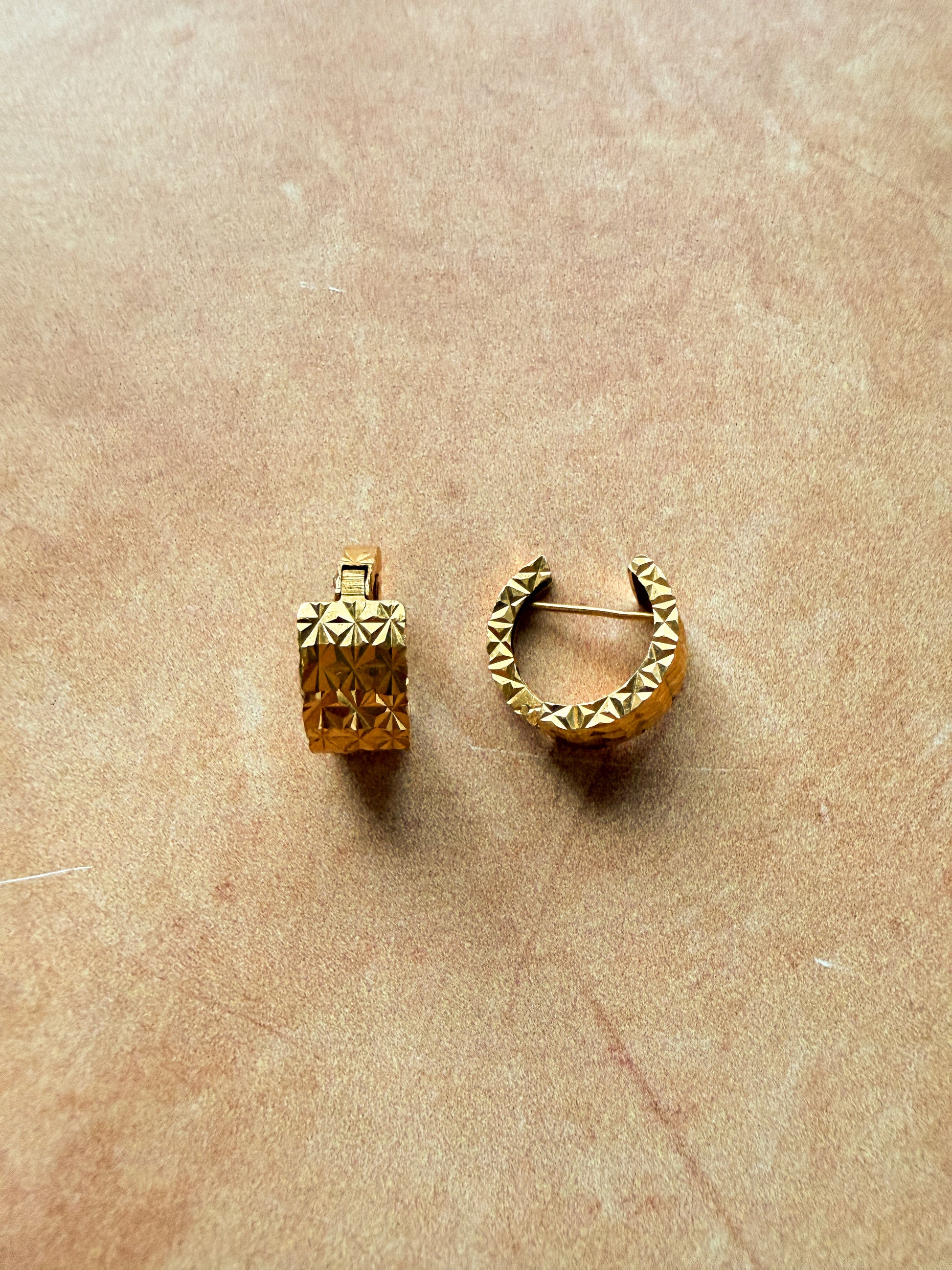 Vintage textured gold hinge hoop earrings. Let your ears make a statement on their own. Original brand: unknown. Estimated circa 1970s.